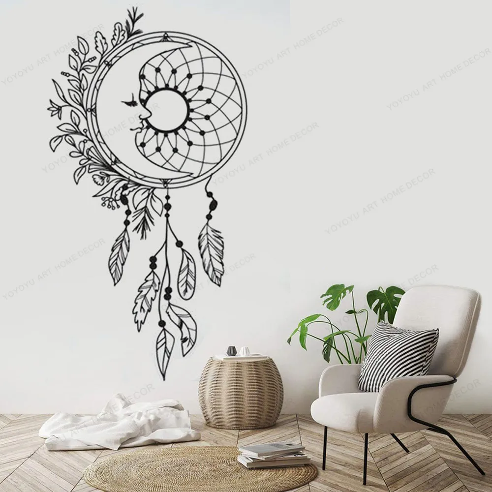 Dream Catcher Wall Decals Moon Vinyl Wall Sticker Night Symbol Wall Art Feathers Wall Decor Dreamcatcher Bedroom Art Mural Hj542 Wall Stickers Aliexpress